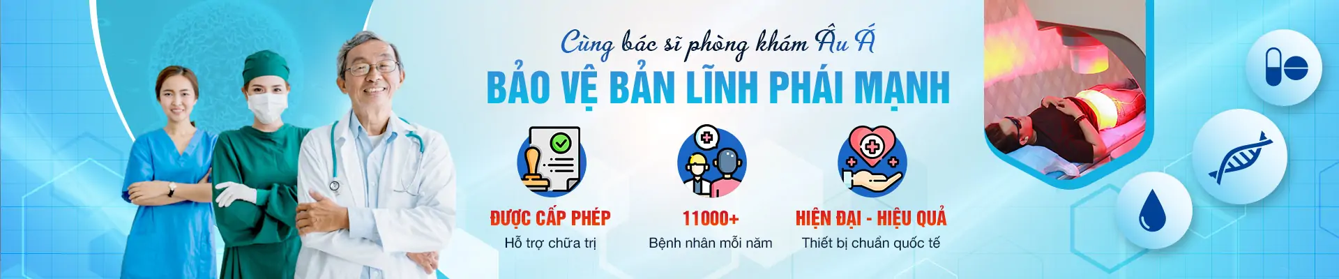 Phòng khám nam khoa Âu Áhoạt động dưới sự quản lý của sở y tế, có trang thiết bị hiện đại, bác sĩ nhiều năm kinh nghiệm, phương pháp hỗ trợ điều trị bệnh hiệu quả, máy móc thiết bị được nhập khẩu từ nhiều nước tiên tiến cùng hệ thống phòng hồi sức, phòng tiểu phẫu, phòng thủ thuật, phòng xét nghiệm… đạt chuẩn y tế - Là điểm đến tin cậy cho mọi bệnh nhân.